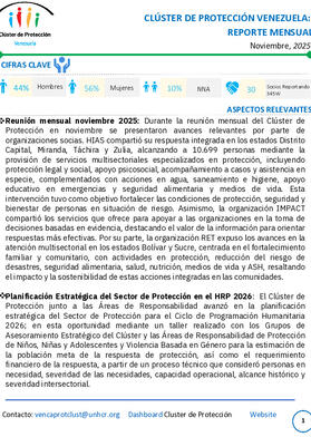 Reporte mensual, Noviembre 2025 - Clúster de Protección, Venezuela