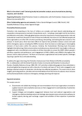 HNPW 2026: Who’s in the Driver’s Seat? Centering Locally-Led Protection Analysis across Analysis-Informed Planning, Response and Transition - Concept Note