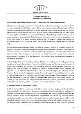 Guidance Note on Cash for Protection - Ethiopia Protection Cluster