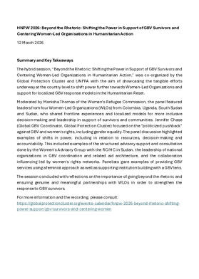 HNPW 2026: Beyond the Rhetoric: Shifting the Power in Support of GBV Survivors and Centering Women-Led Organisations in Humanitarian Action - Summary and Key Takeaways