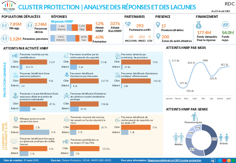 Cluster Protection RDC : Analyse des réponses et des lacunes au 31 août 2025