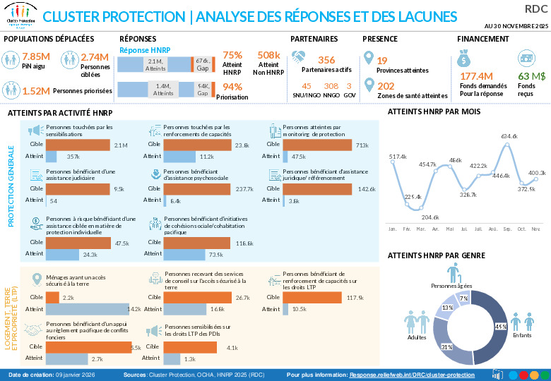 Cluster Protection RDC : Analyse des réponses et des lacunes au 30 novembre 2025