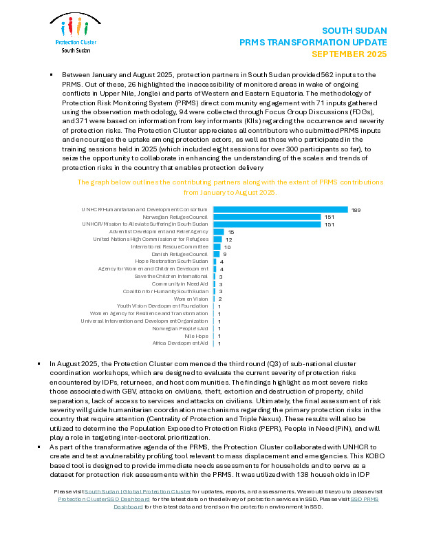 Protection Cluster South Sudan, Monthly Update (September - October 2023)