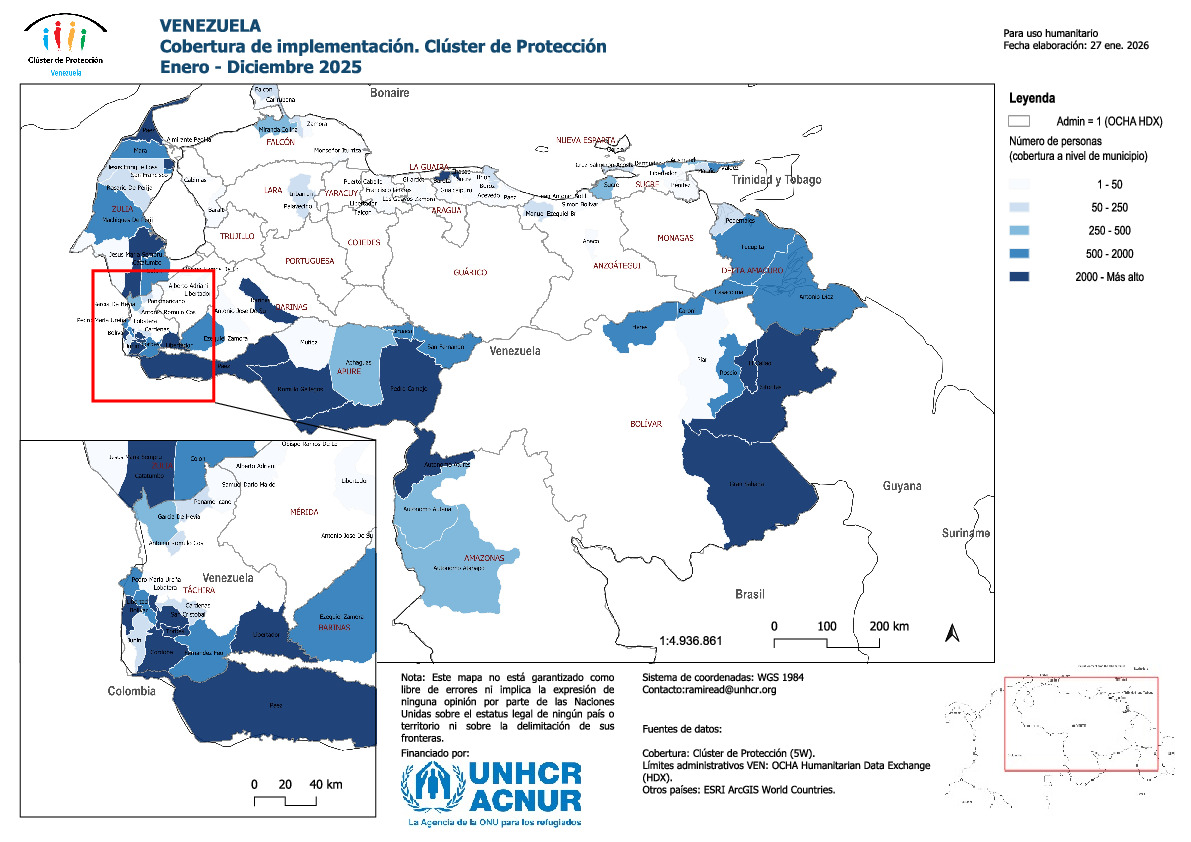 Mapa de Cobertura de Implementación, Clúster de Protección Venezuela, Enero – Diciembre 2025