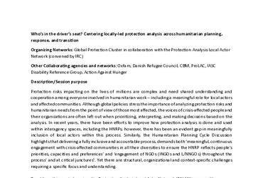 HNPW 2026: Who’s in the Driver’s Seat? Centering Locally-Led Protection Analysis across Analysis-Informed Planning, Response and Transition - Concept Note
