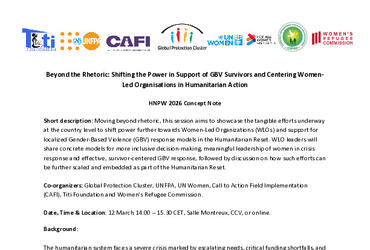 HNPW 2026: Beyond the Rhetoric: Shifting the Power in Support of GBV Survivors and Centering Women-Led Organisations in Humanitarian Action - Concept Note