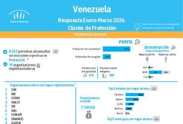 Hoja resumen del Clúster de Protección con información sobre personas alcanzadas, perfil, desagregación demográfica, estados con mayor respuesta y socios implementadores.
