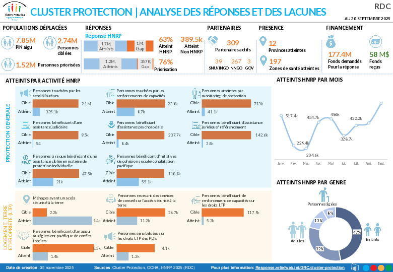 Cluster Protection RDC : Analyse des réponses et des lacunes au 30 septembre 2025