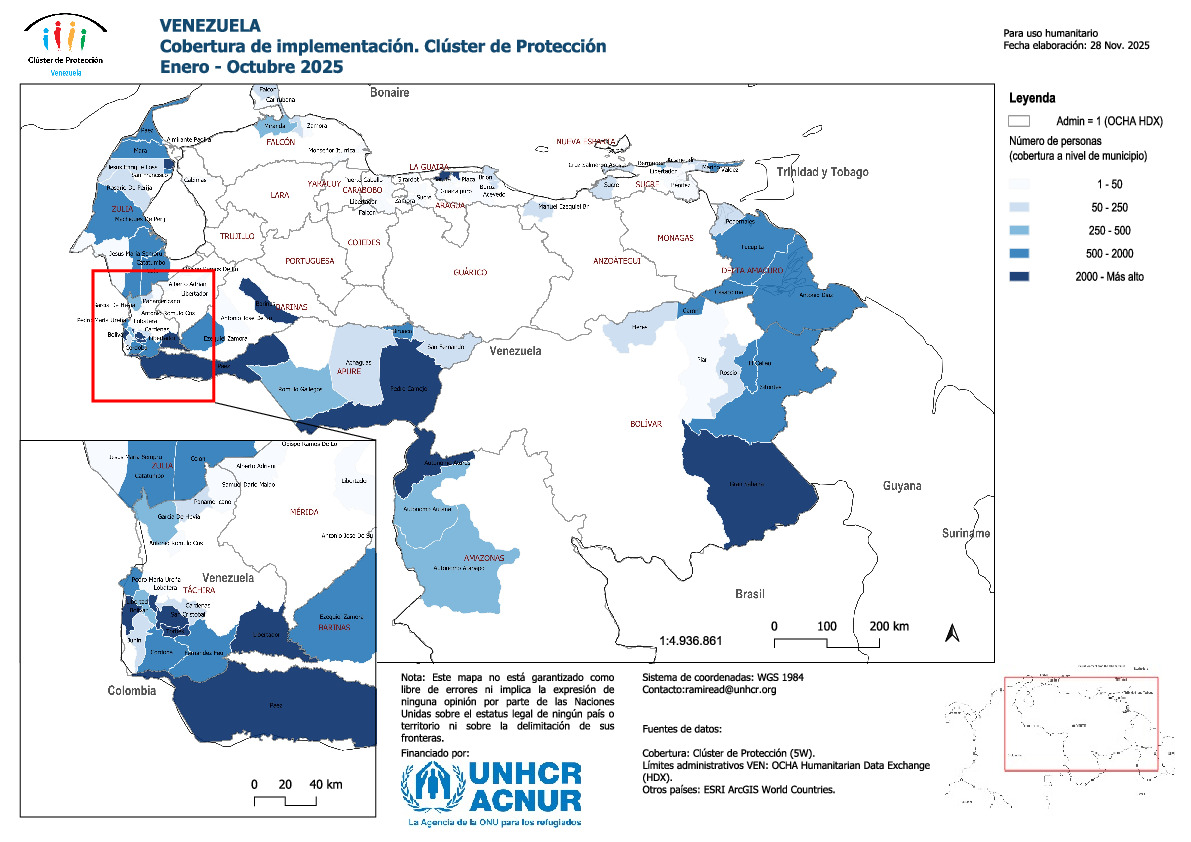 Mapa de Cobertura de Implementación Clúster de Protección Venezuela Enero – Octubre 2025