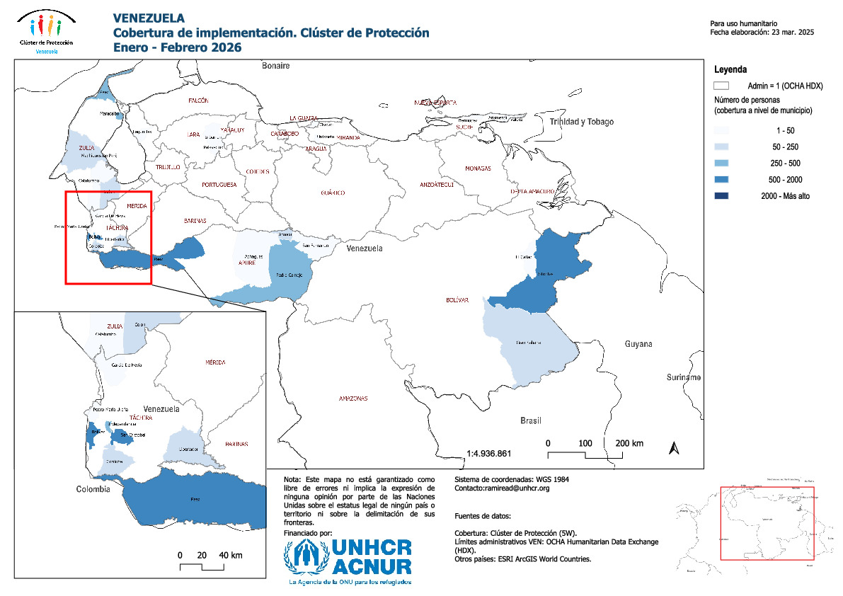 Mapa de Cobertura de Implementación, Clúster de Protección Venezuela, Enero-Febrero 2026
