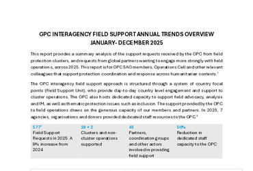 The Protection Risks: Explanatory note provides guidance on the use of the 15 protection risks monitored by the Global Protection Cluster. The document contains the standard definitions developed by the Global Protection Cluster and AoRs, illustrating: