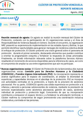 Reporte mensual Agosto-Clúster de Protección de Venezuela