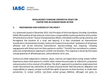 In a Statement issued in December 2013, the Principals of the Inter-Agency Standing Committee (IASC) affirmed that all humanitarian actors have a responsibility to place protection at the center of humanitarian action. The IASC has committed to a systemwide and comprehensive response to conflict and disasters. This response is driven by the needs and perspectives of affected persons, with protection at its core.