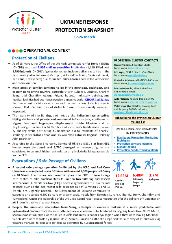 Ukraine Response – Protection Snapshot, 17-26 March 2022